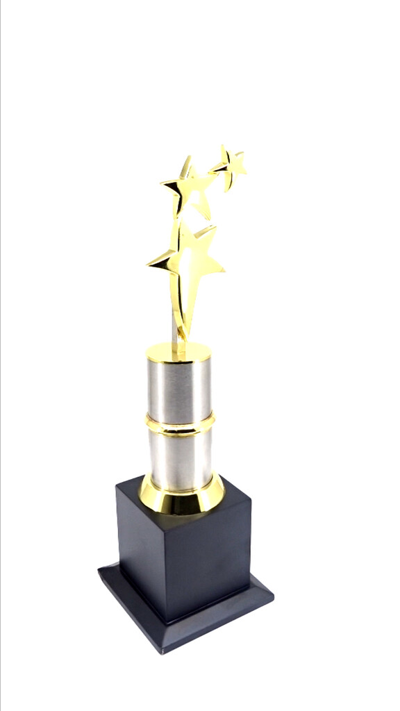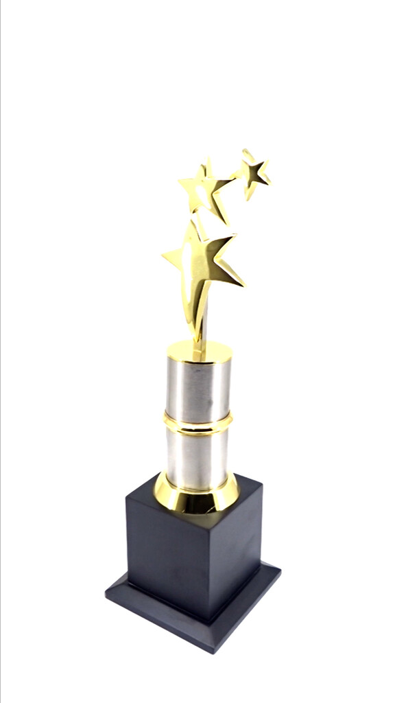 TRO-2521 celebrates modern brilliance with its silver body, golden detailing, and a trio of rising stars. Designed for top dealership recognition or channel partner awards, this trophy conveys bold momentum and excellence, making it a proud centrepiece in any award celebration.