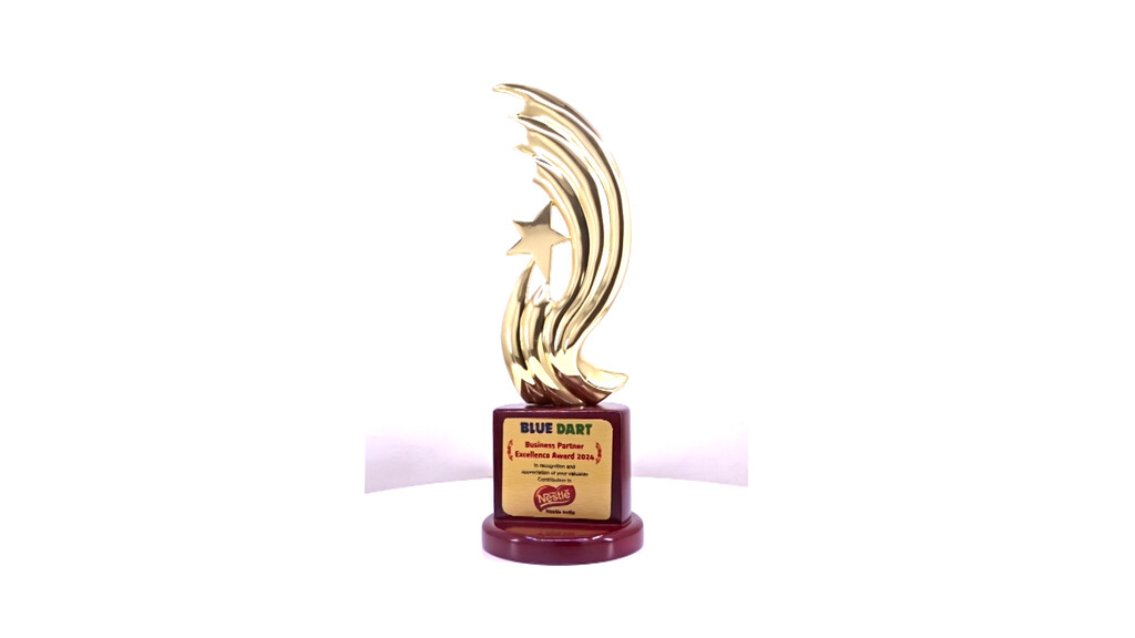 Premium Metal Designer Star Trophy, On A Wooden Base