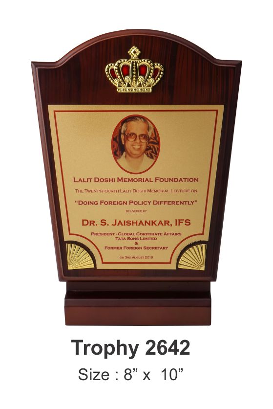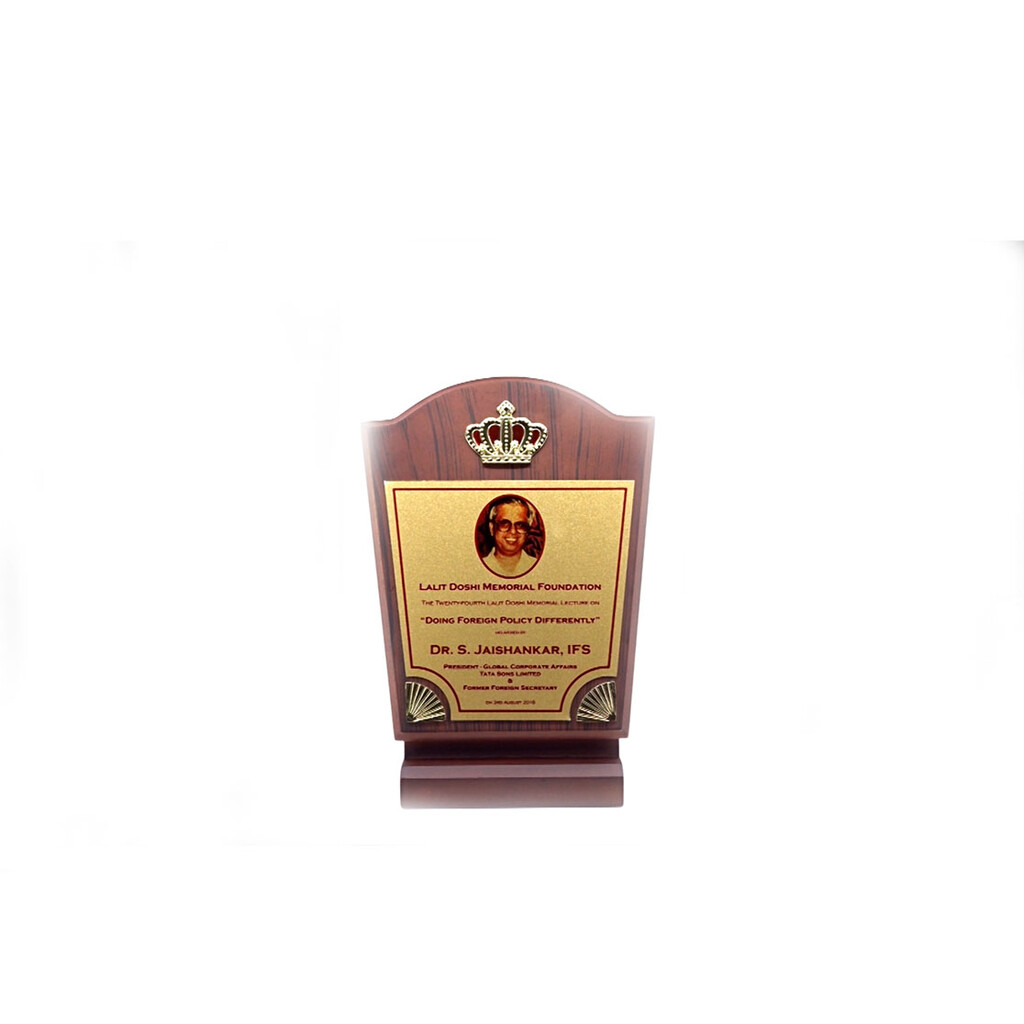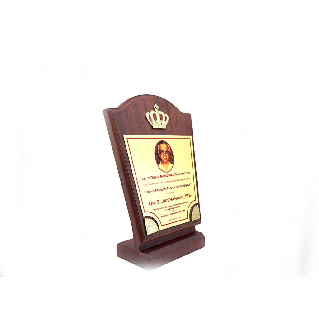 A royal-inspired 8x10? plaque topped with an ornamental crown and vintage gold corners, making it a bold piece for dignitary recognitions, lecture memorials, or foundation awards. Designed to honour legacy and leadership.