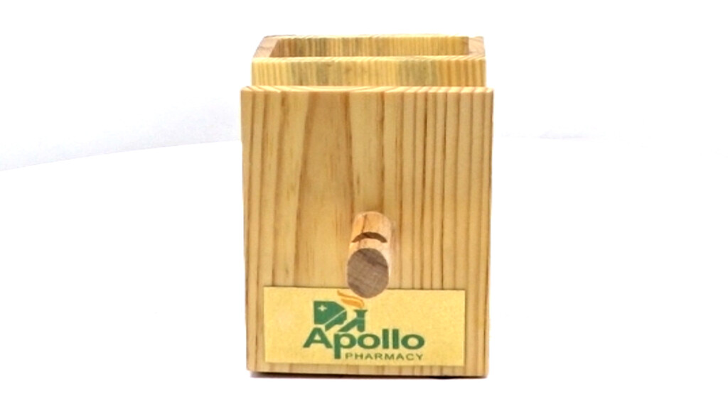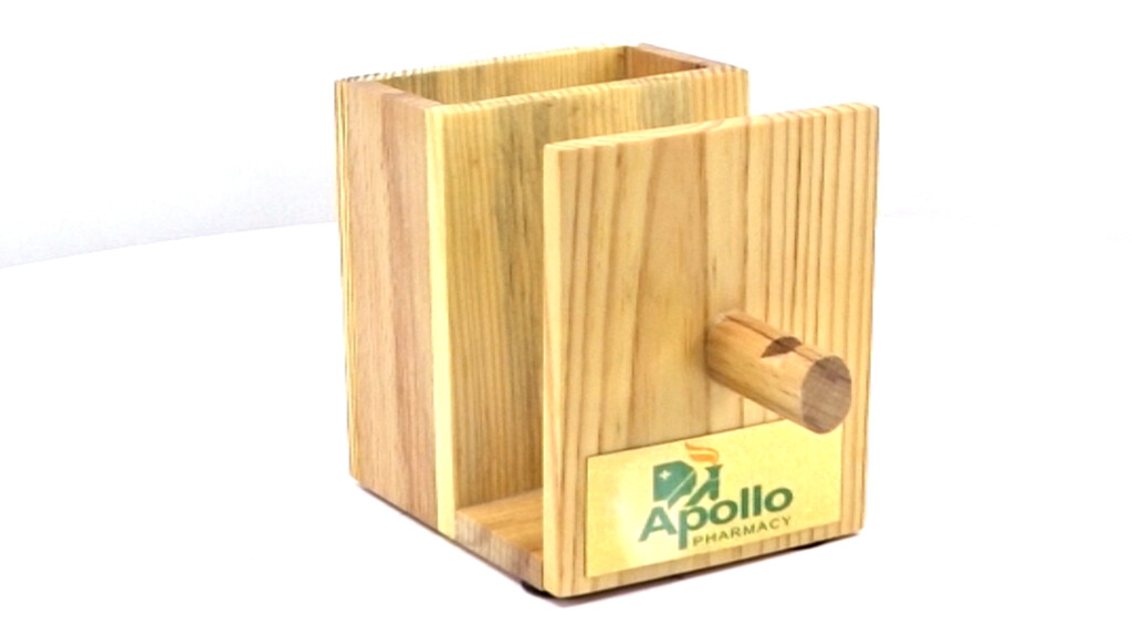 A small desk essential with big personality?this wooden stand neatly holds pens, a mobile phone, and even doubles as a glasses rest. Perfect for daily use, it keeps your brand in sight with tasteful engraving or printing.