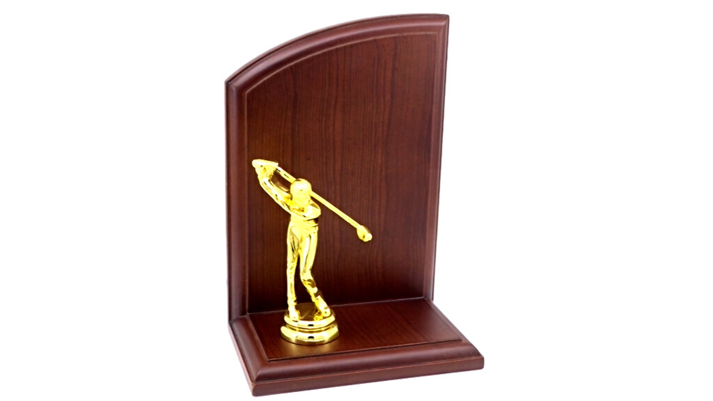 The perfect finish to a winning swing?this high-gloss wooden base holds a golden golfer mid-action, immortalising the spirit of the game. The large metal plate is ready for vibrant multi-colour branding, making it a keepsake for champions at corporate tournaments, club events, and charity matches.