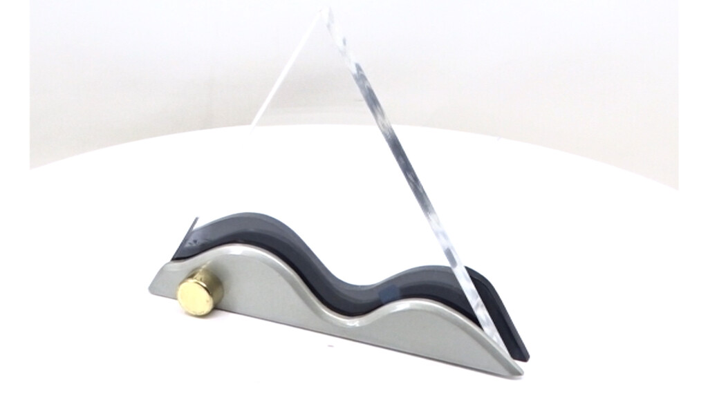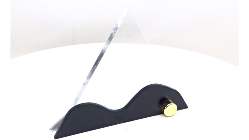 This unique 6" triangular acrylic trophy is designed for fast-paced recognition moments. Mounted on a solid black base with a single golden pin, it honours rising talent at hackathons, startup meets, or pitch competitions where innovation deserves a spotlight.