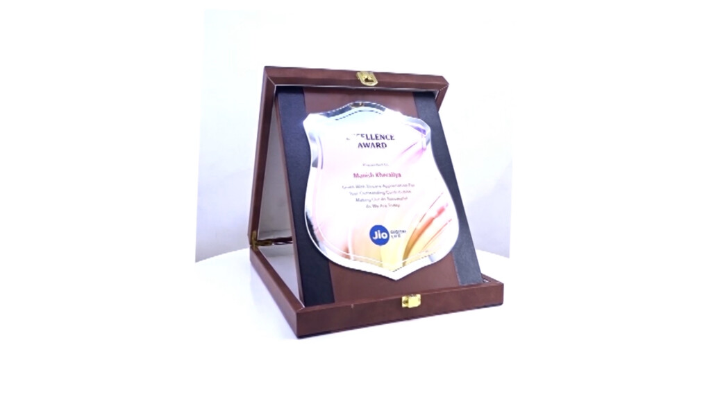 Celebrating milestones with elegance, this award blends modern flair and timeless gratitude. Set in a rich PU leather-wrapped wooden box, the printed glass shield offers full multi-colour branding, turning appreciation into a vivid memory. Perfect for corporate excellence awards and premium recognition ceremonies.