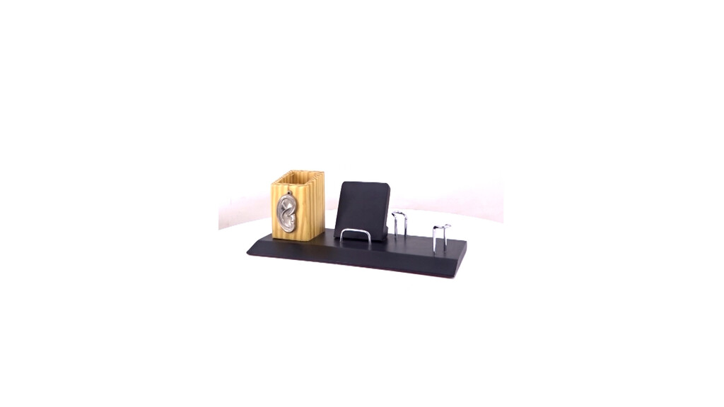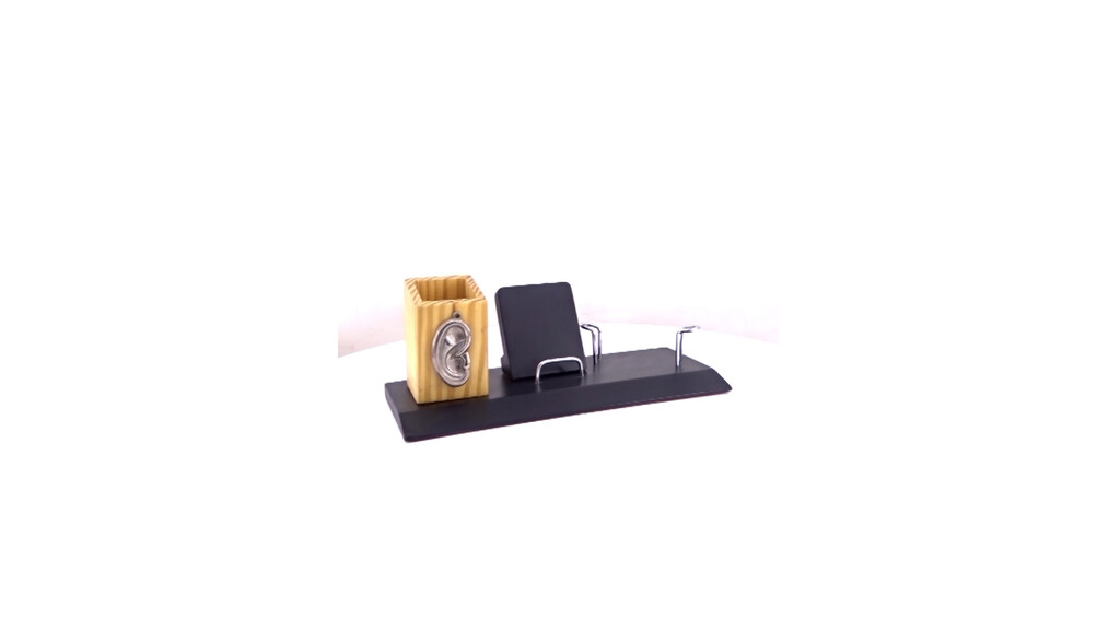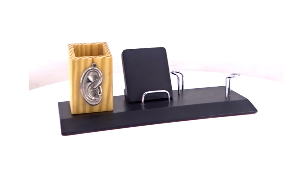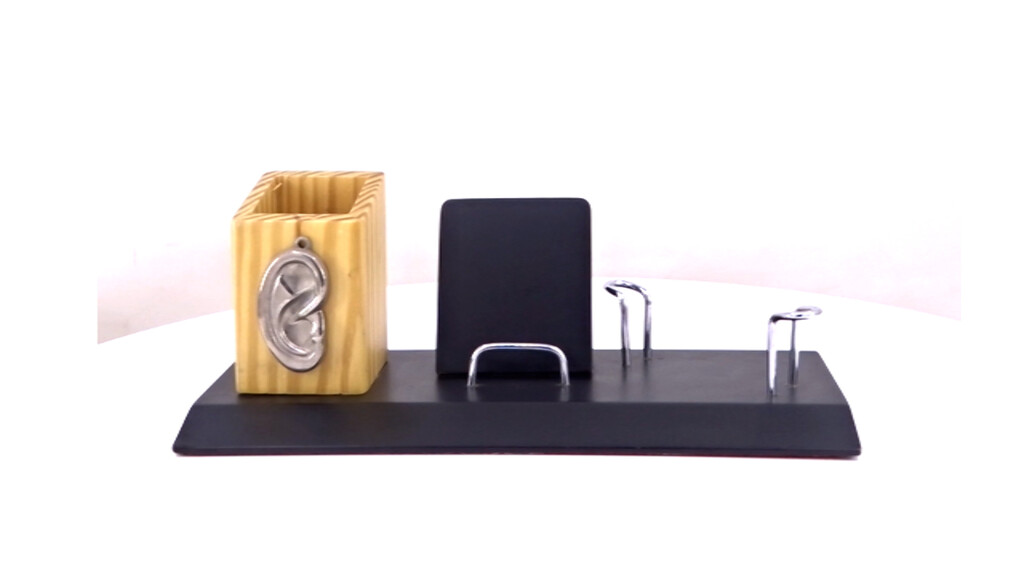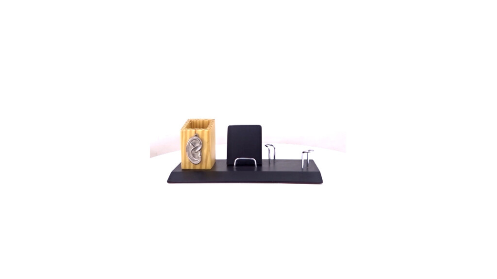 Dedicated to those who listen with care, this desk set features a sculpted ear design on the pen holder. Thoughtfully designed with a mobile stand and card holder, it?s perfect for audiology centres and hearing-care campaigns with branding that makes an impression.